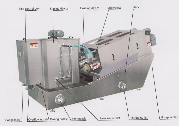 تدمج آلة إزالة المياه الحمأة خزانة التحكم التلقائي ، وجسم السماكة للحمأة وجمع سائل في الجسم. يمكن أن يدرك التلبد عالي الكفاءة في ظل الأجزاء التلقائية التلقائية بالكامل ، ويكمل باستمرار سماكة الحمأة وضغط اليشم.